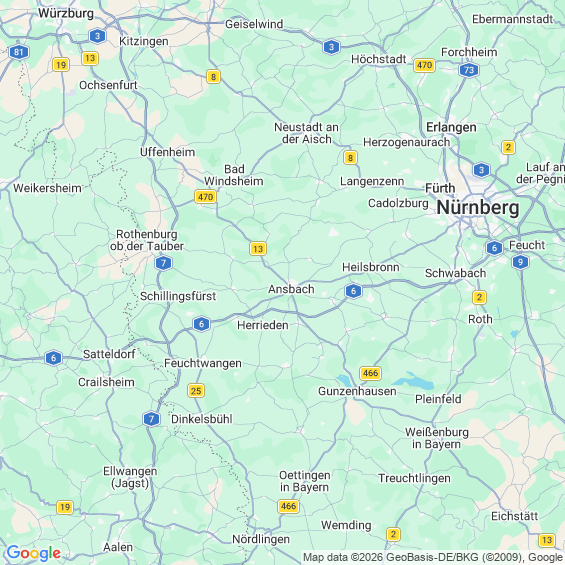 Städte in der Nähe von Ansbach