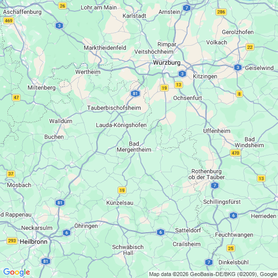 Städte in der Nähe von Bad Mergentheim