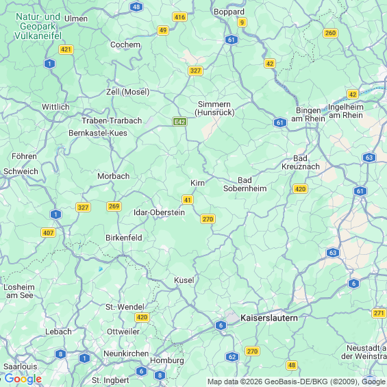Städte in der Nähe von Bärenbach Bad Kreuznach