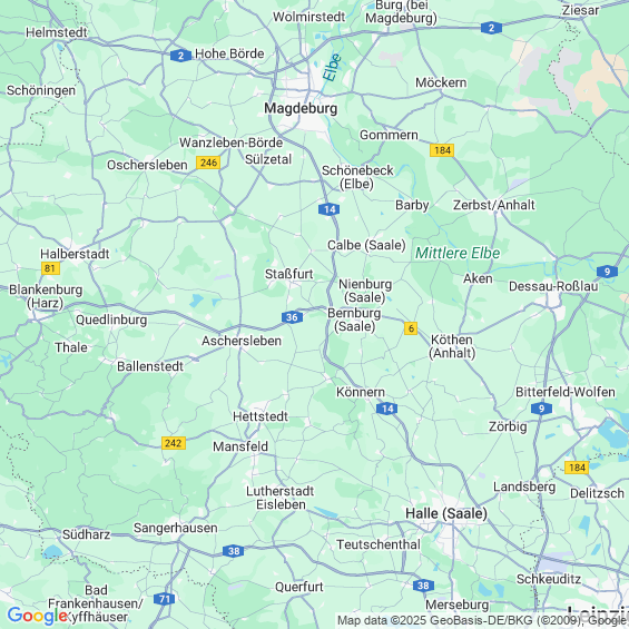 Städte in der Nähe von Bernburg (Saale)