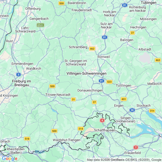 Städte in der Nähe von Donaueschingen