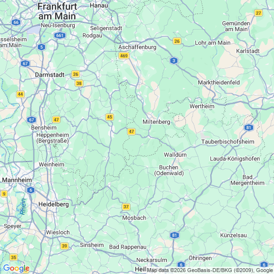 Städte in der Nähe von Erbach Odenwaldkreis