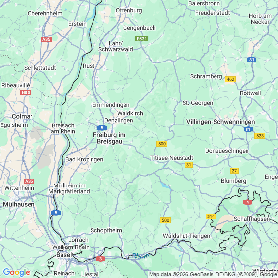 Städte in der Nähe von Freiburg im Breisgau