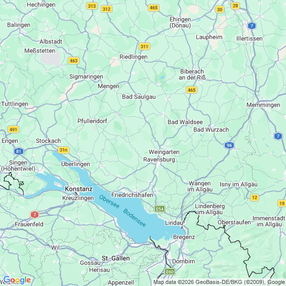 Städte in der Nähe von Friedrichshafen