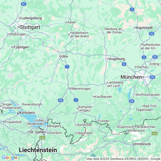 Städte in der Nähe von Kempten (Allgäu)