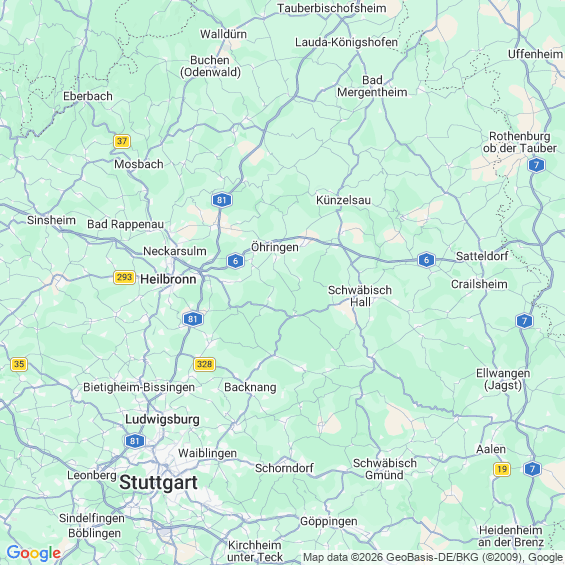 Städte in der Nähe von Pfedelbach
