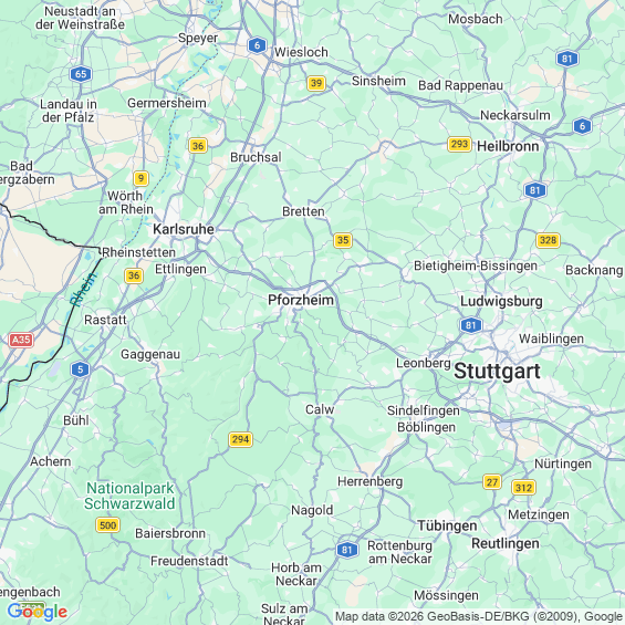 Städte in der Nähe von Pforzheim