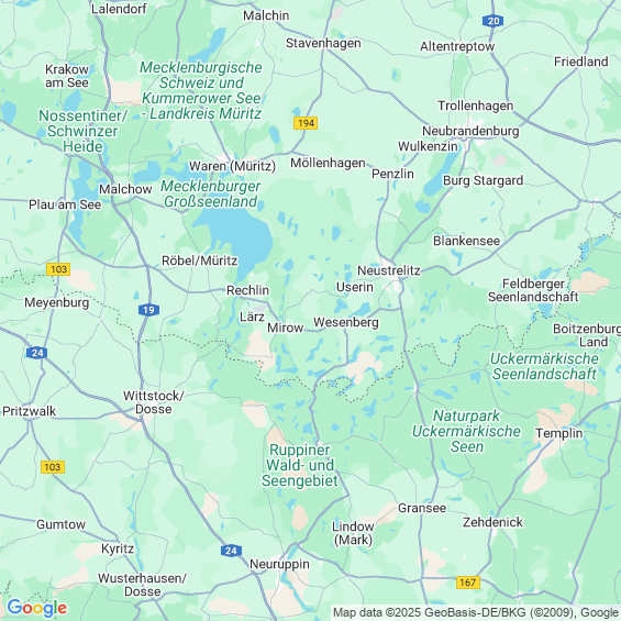 Städte in der Nähe von Roggentin Mecklenburgische Seenplatte