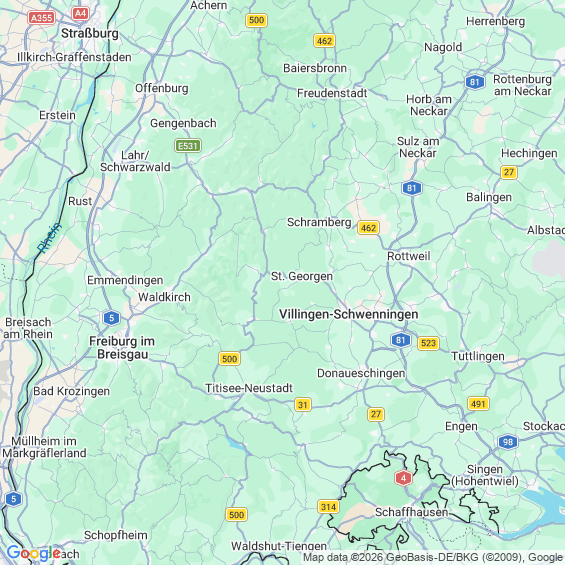 Städte in der Nähe von St. Georgen im Schwarzwald