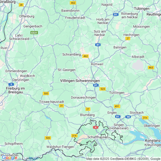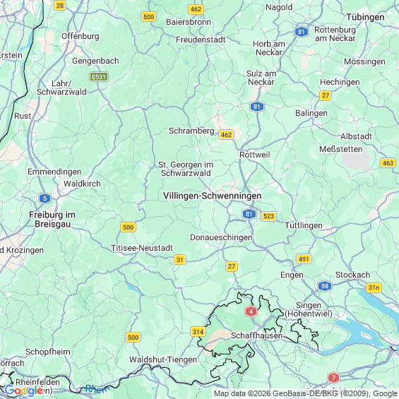Städte in der Nähe von Villingen-Schwenningen