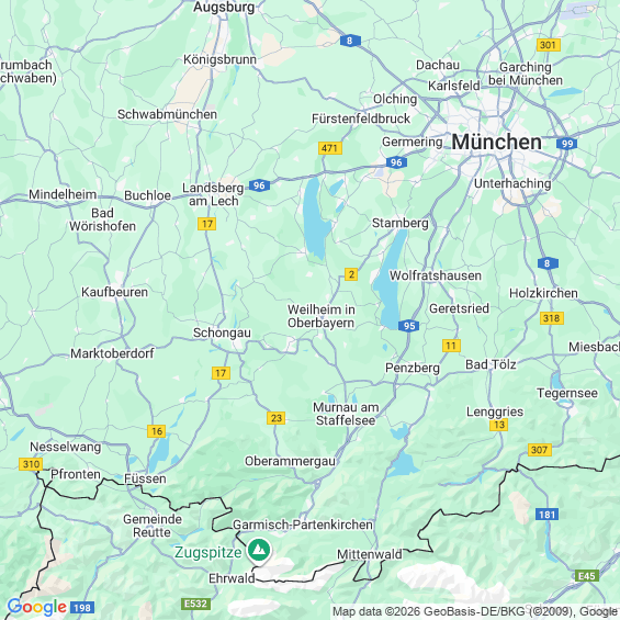 Städte in der Nähe von Weilheim in Oberbayern