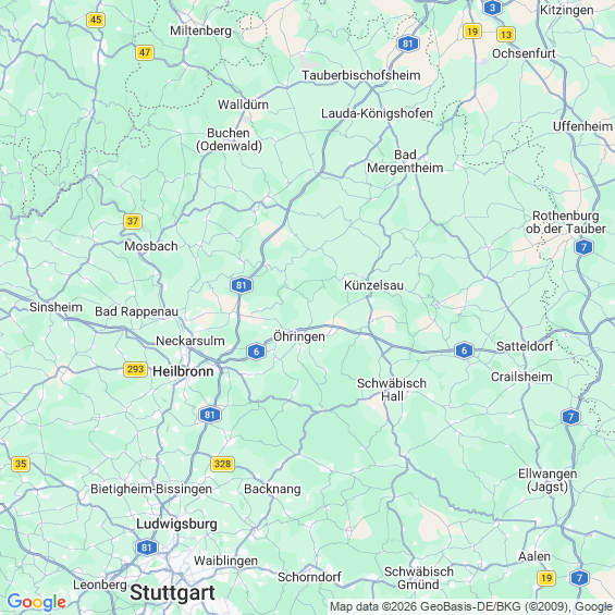 Städte in der Nähe von Weißbach Hohenlohekreis